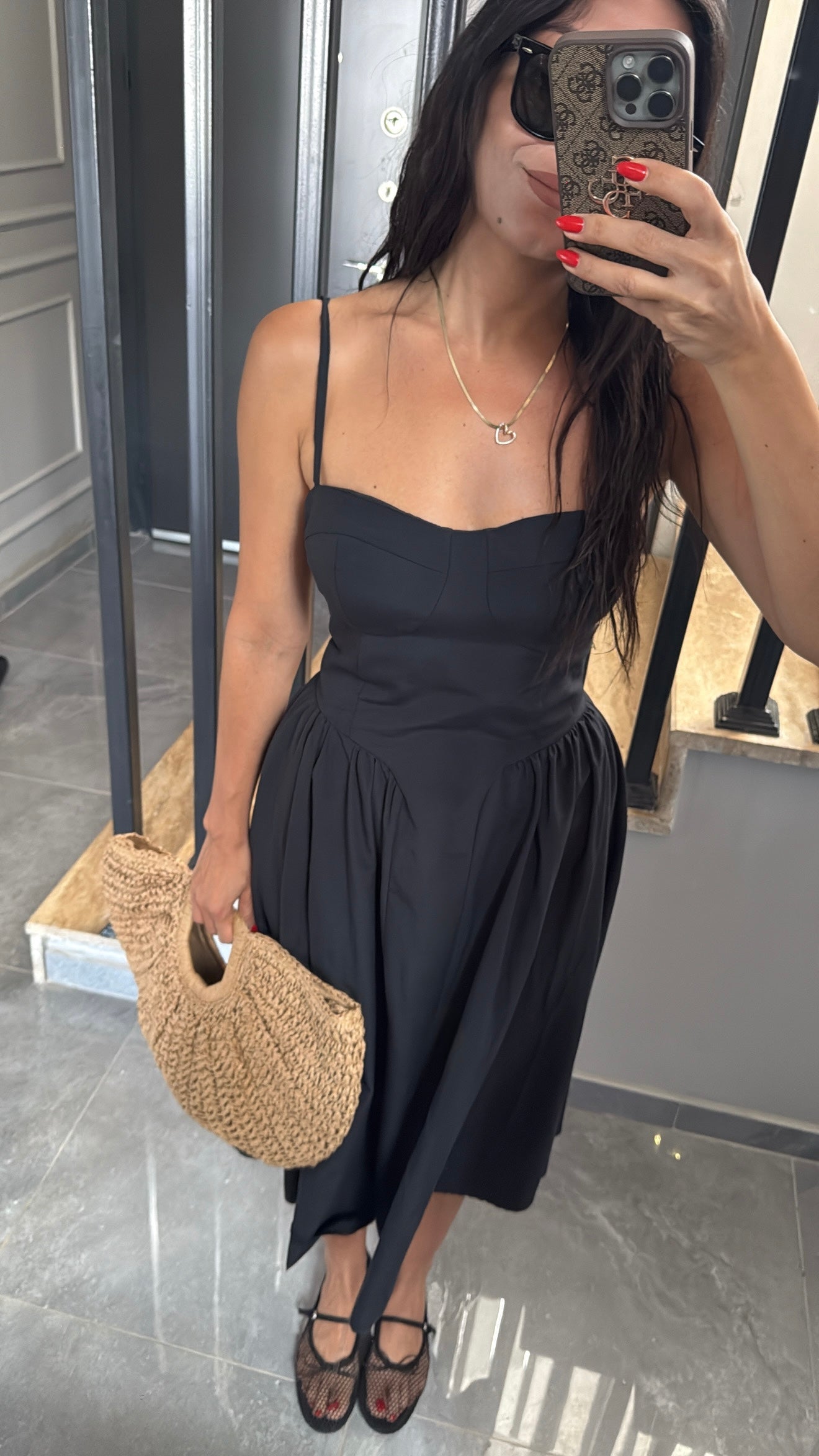 ASKILI GÖĞÜS KUPLU SİYAH ELBİSE