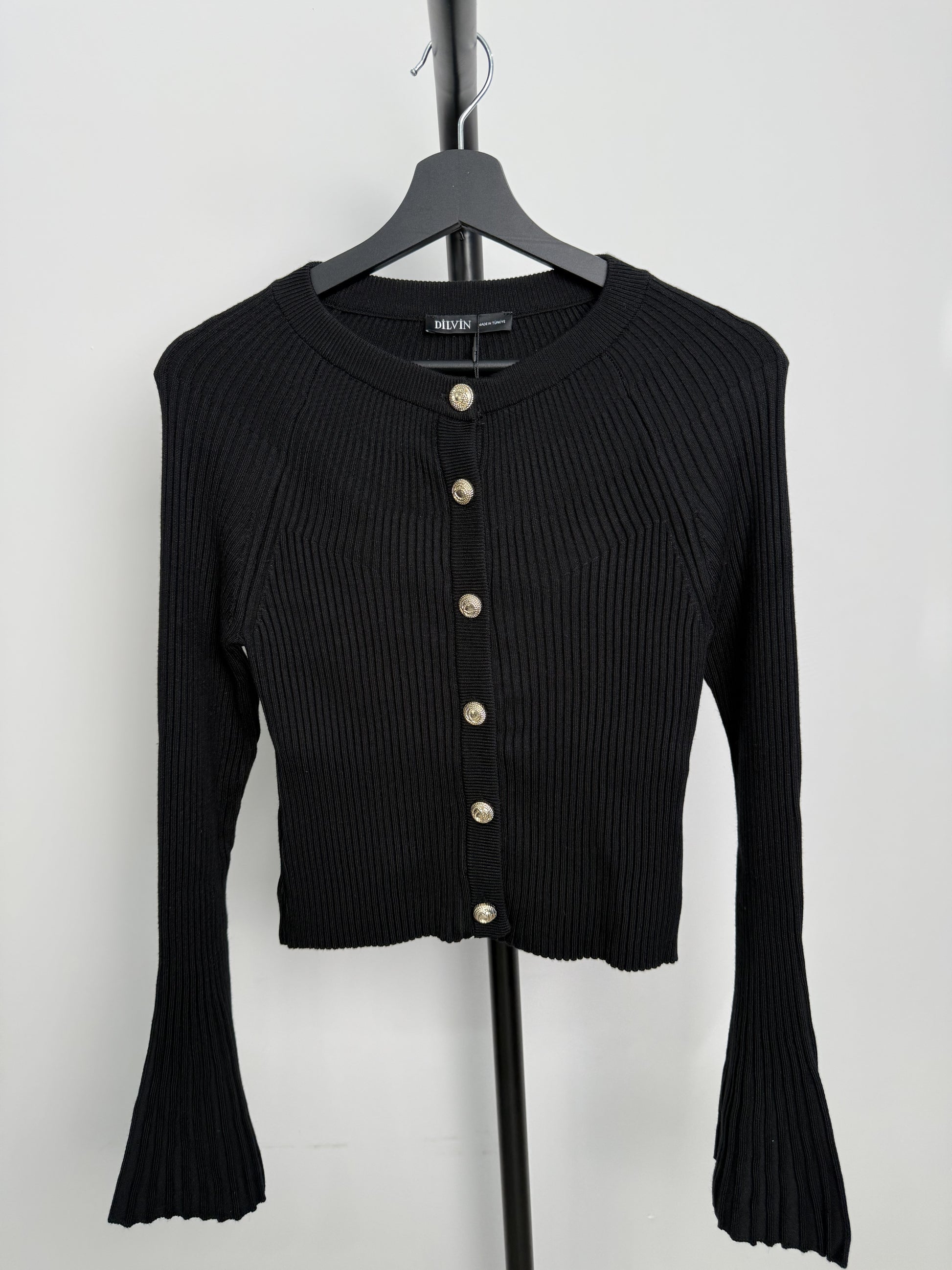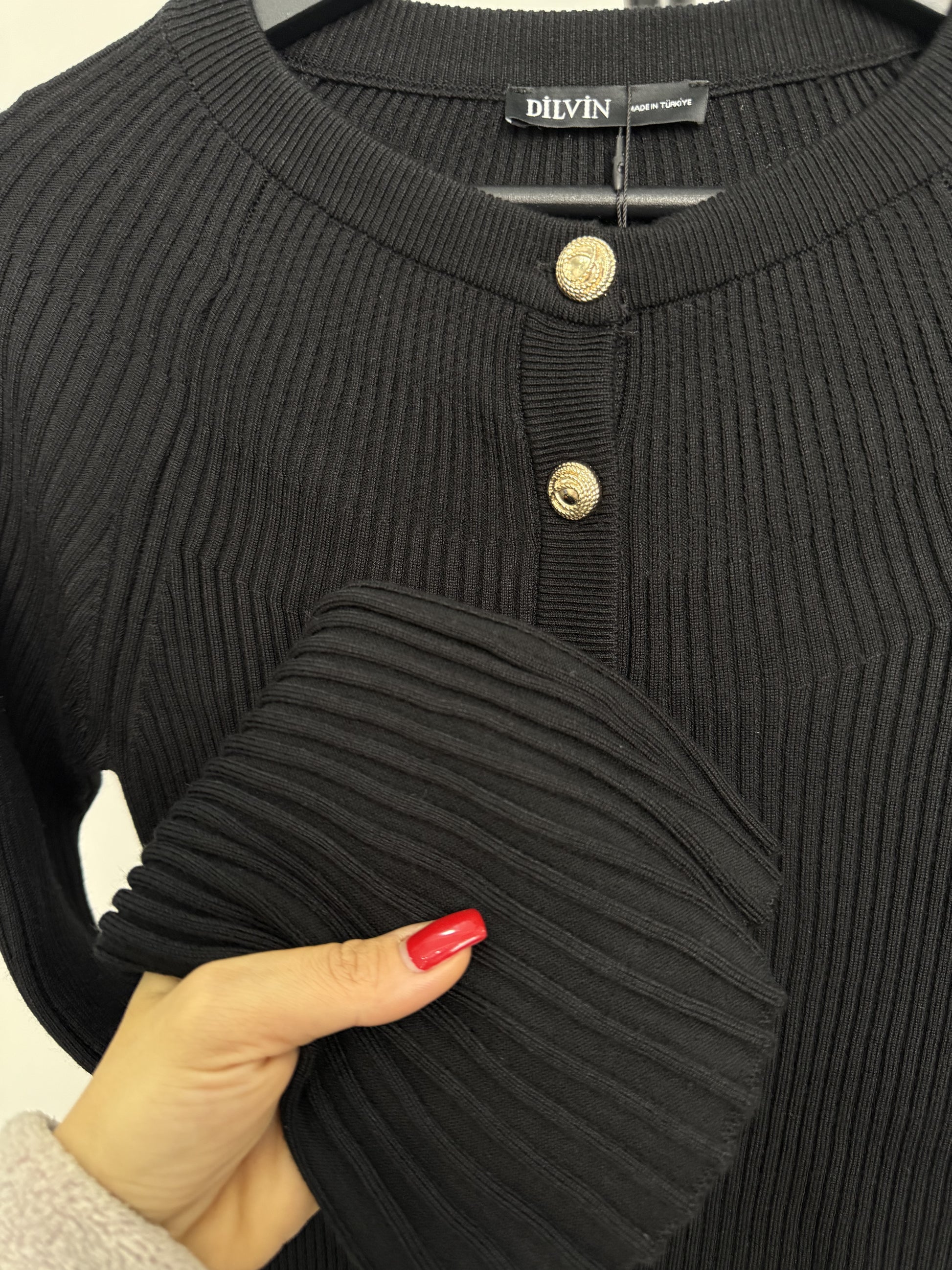Bisiklet Yaka Düğmeli İspanyol Kol Siyah Hırka