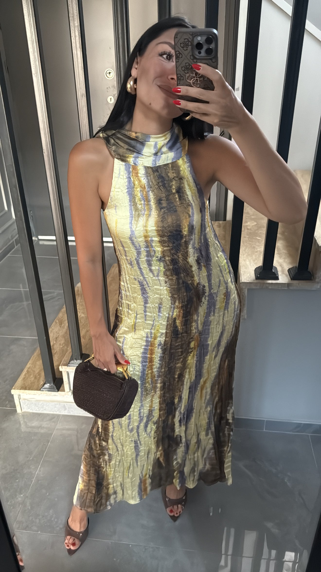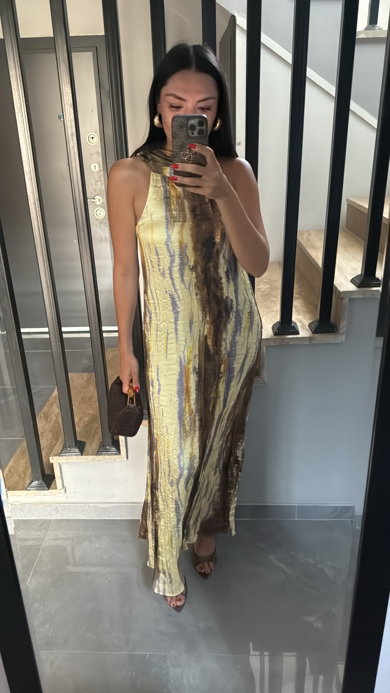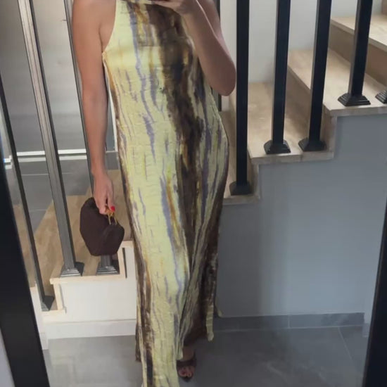 BATİK DESENLİ ASTARLI SATEN ELBİSE