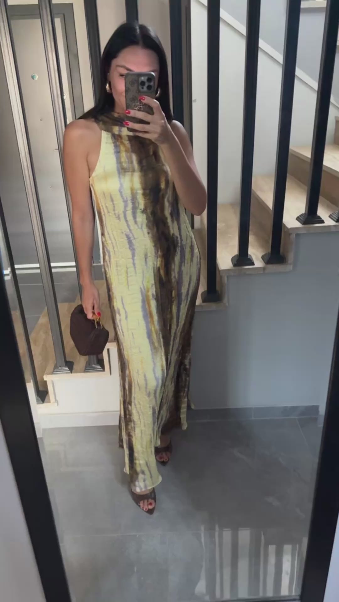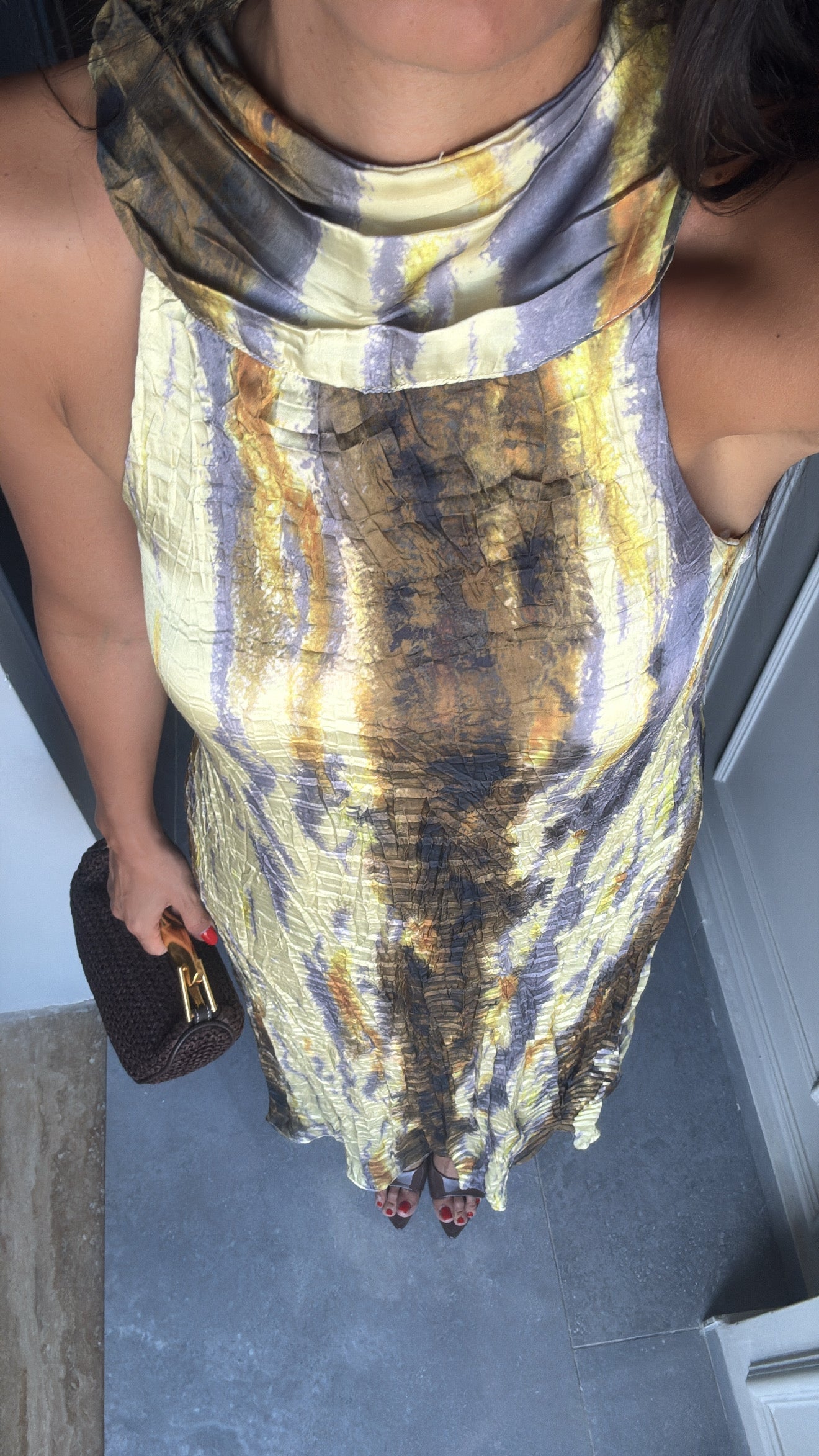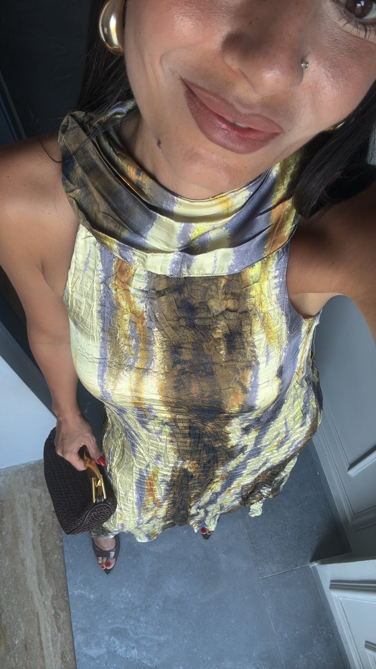 BATİK DESENLİ ASTARLI SATEN ELBİSE