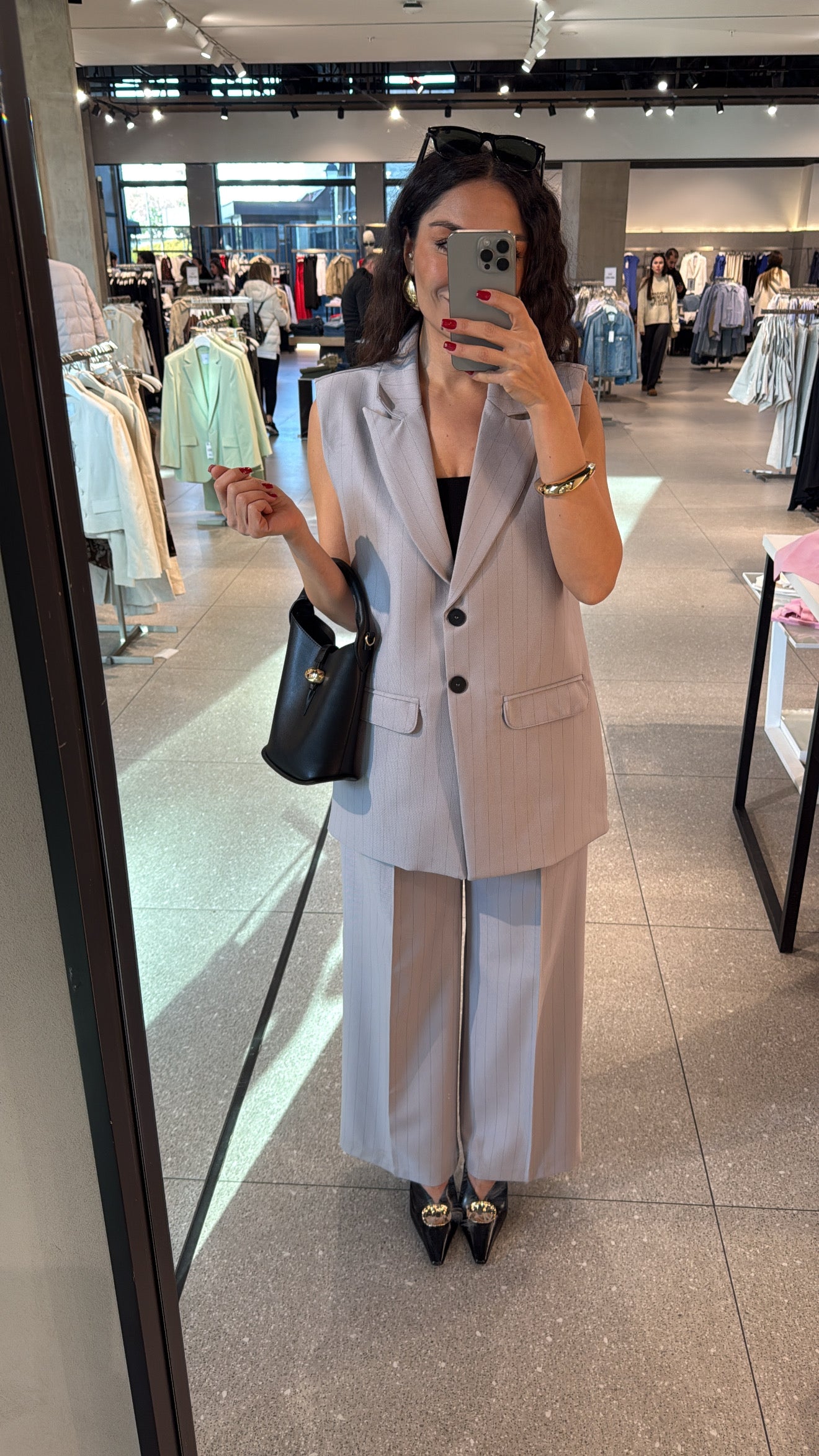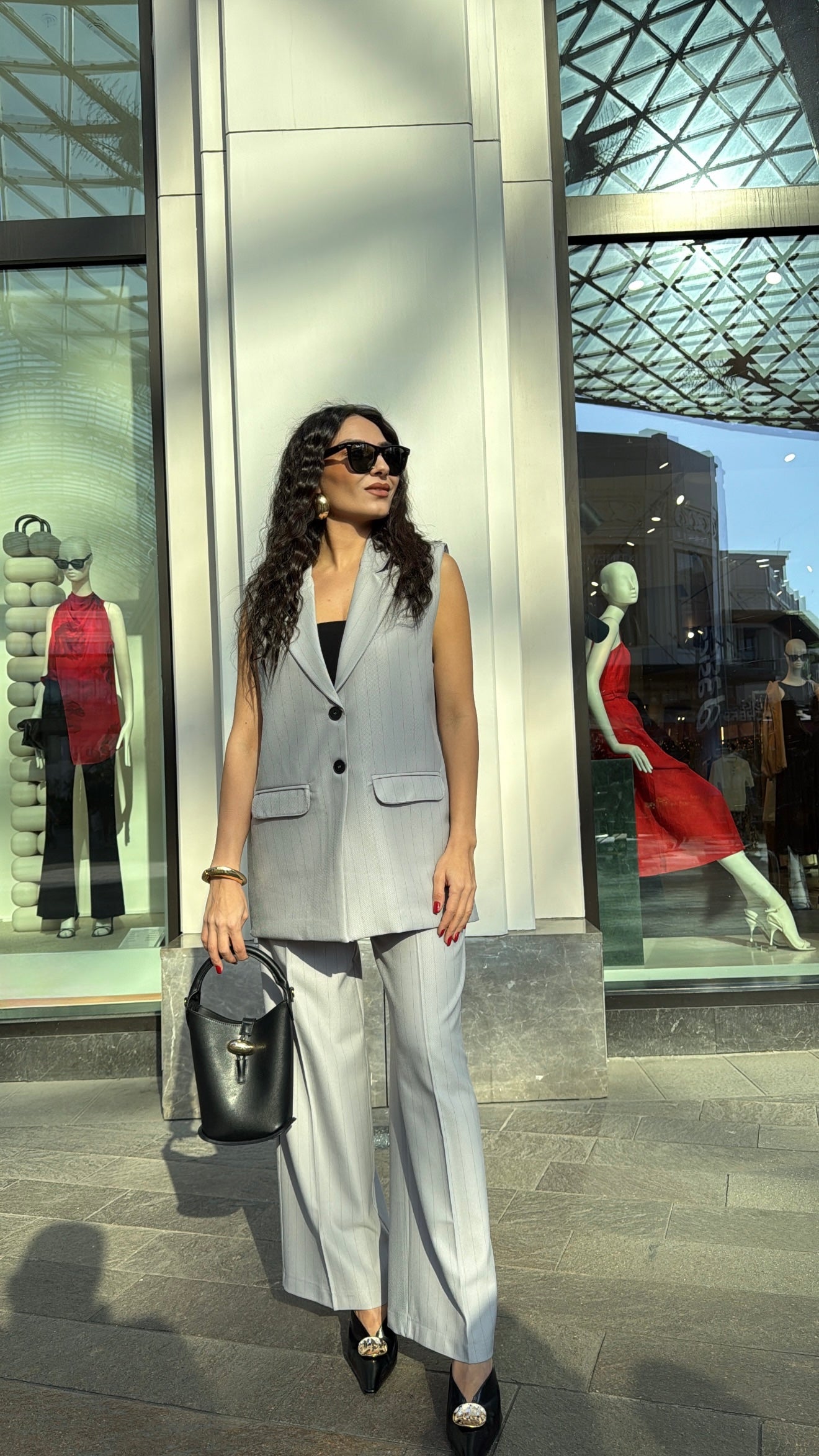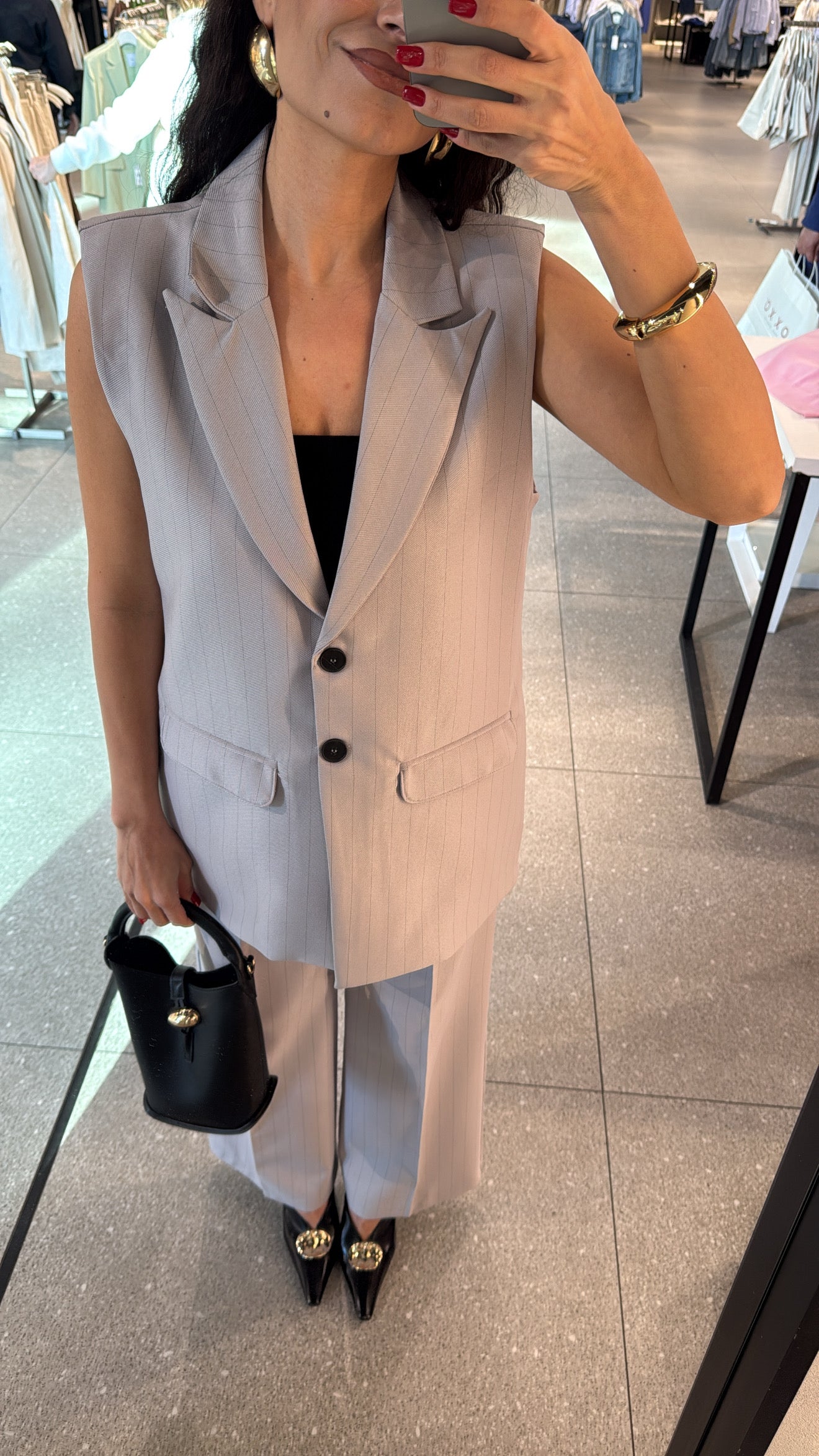 Gri Çizgili Yelek Pantolon Takım