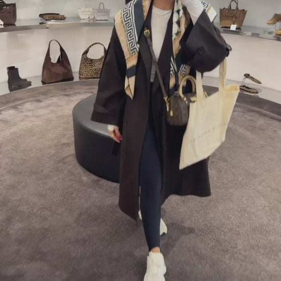 Premium Dokuda Astarlı Acı Kahverengi Kuşaklı Trençkot