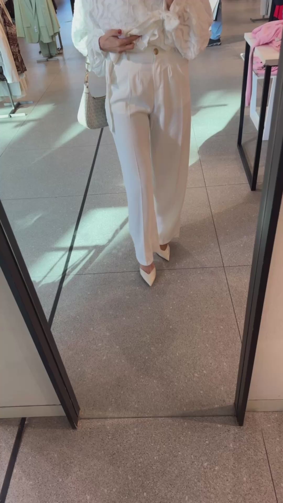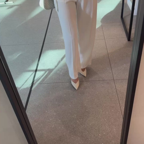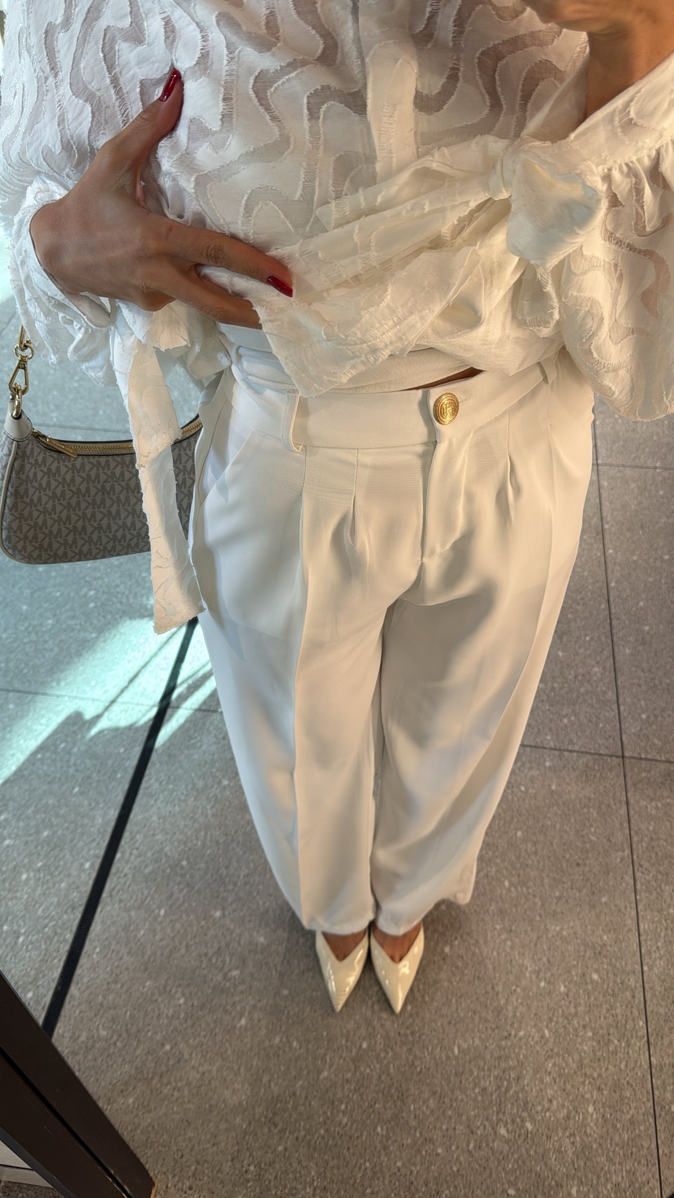 Tensel Kumaş Beyaz Pileli Palazzo Pantolon