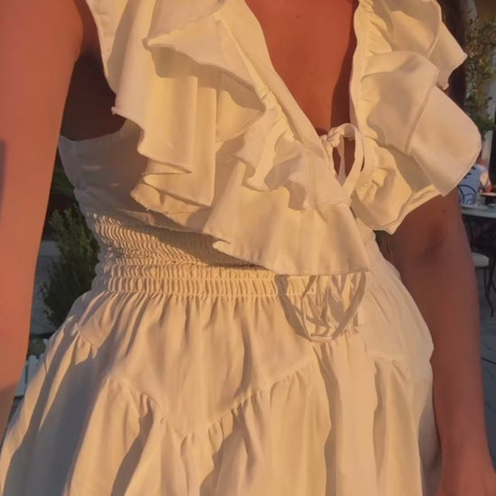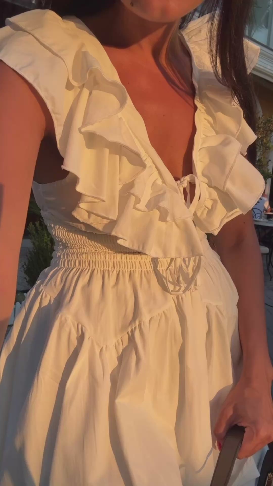 YAKASI FIRFIRLI BEYAZ MİNİ ELBİSE